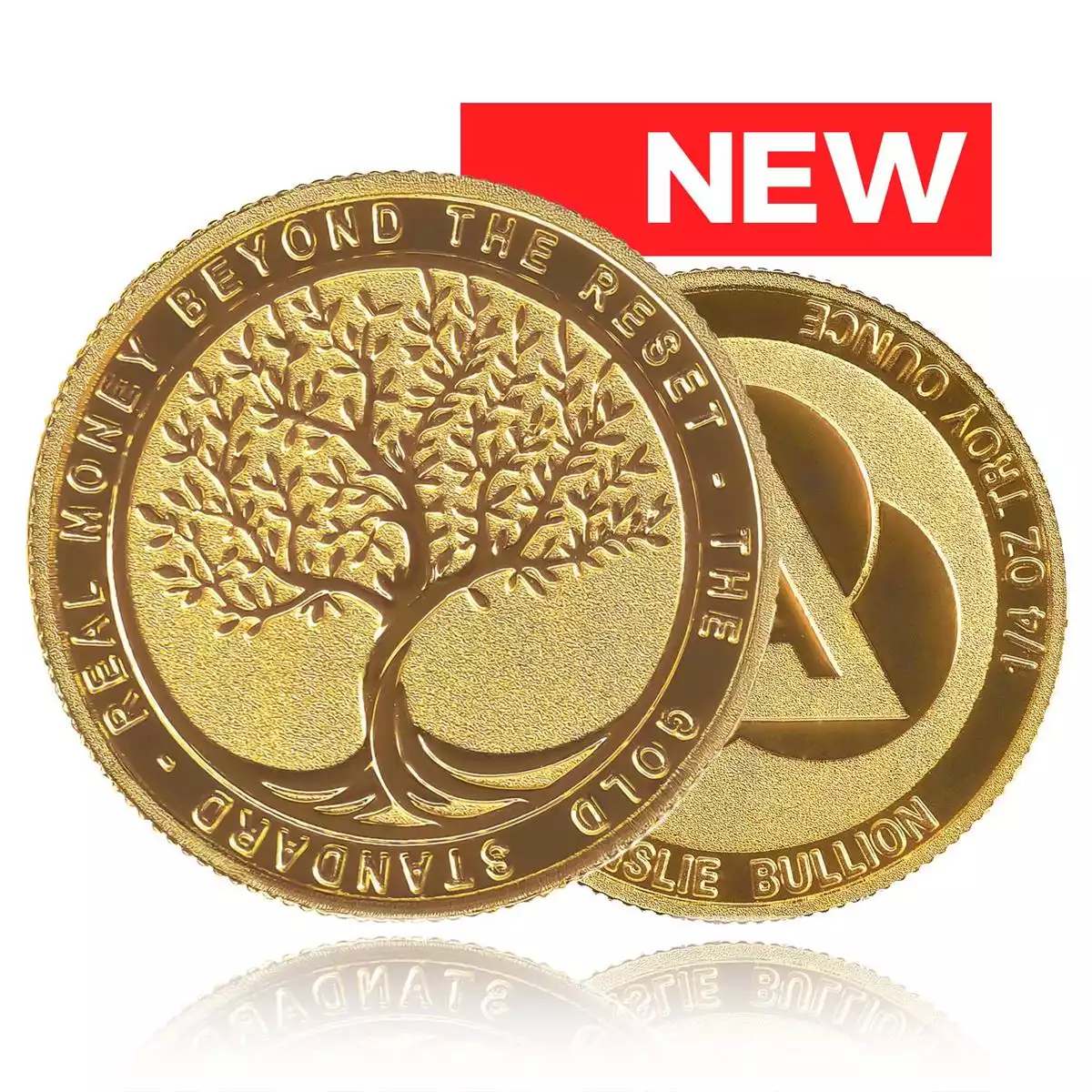 The obverse features Ainslie’s signature tree design – a symbol of growth, resilience, and long-term wealth preservation. Meticulously detailed, the tree represents the strength of gold as a store of value across generations. Encircling the rim is the powerful phrase: “REAL MONEY BEYOND THE RESET – THE GOLD STANDARD” – a statement on gold’s enduring role through economic change.
