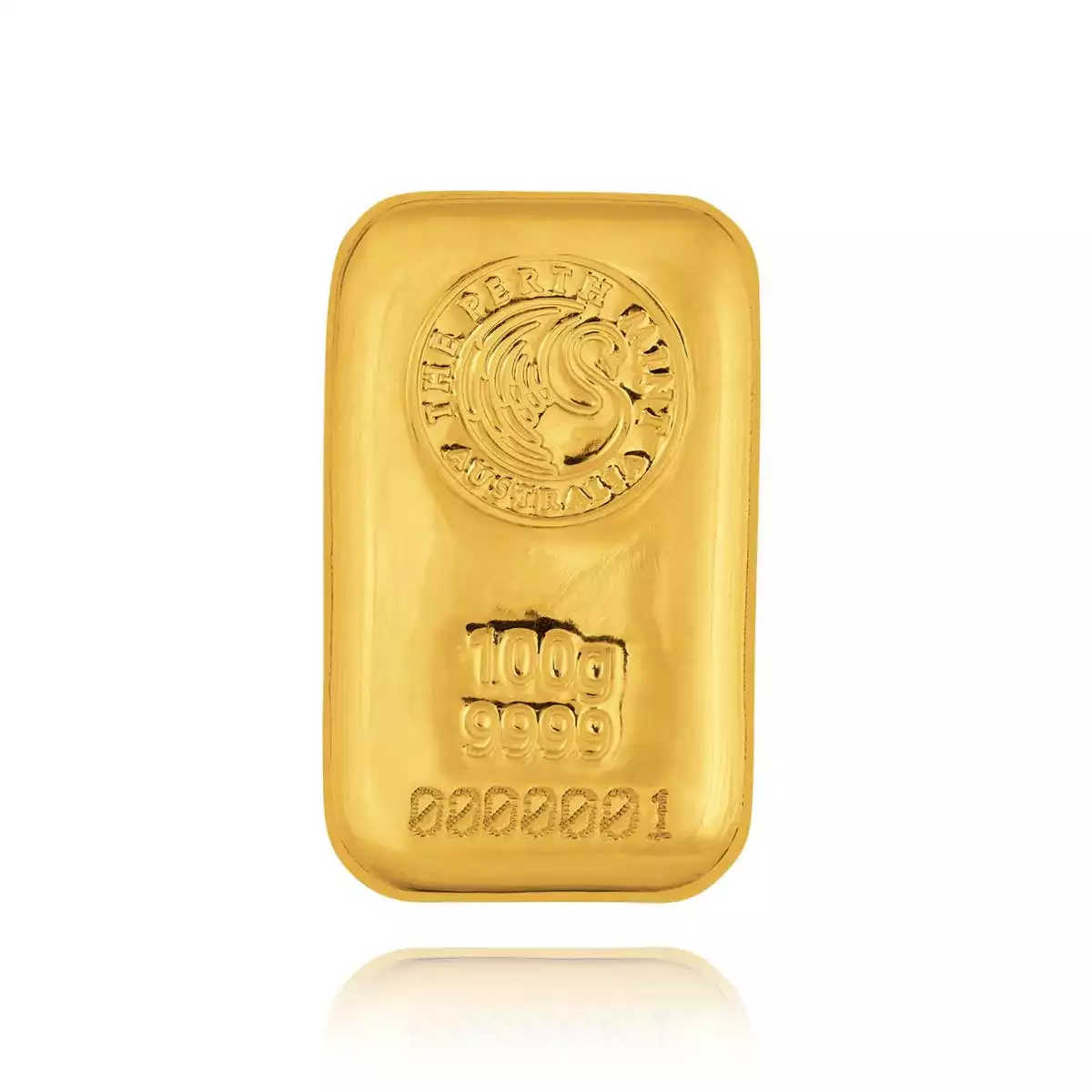 Perth Mint's classic cast 100g gold bar.