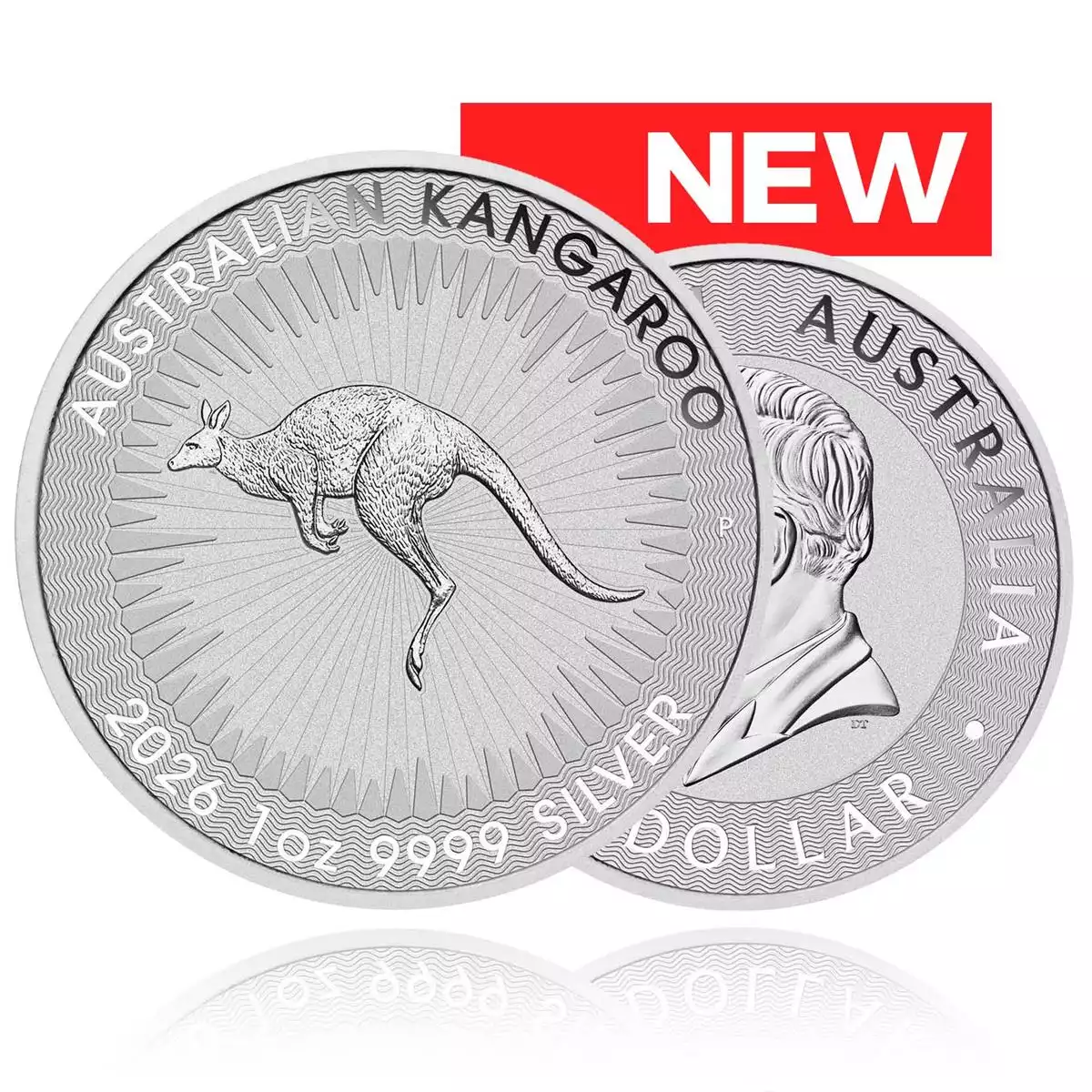 The kangaroo takes centre stage in the 2026 silver coin design with a leaping kangaroo, surrounded by stylised rays of bursting sunlight. Inscriptions on a wavy-lined border include ‘AUSTRALIAN KANGAROO’ and the coin’s weight, purity, and 2026 year-date, together with The Perth Mint’s ‘P’ mintmark.