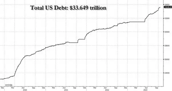 “The national debt has increased by more than $600 billion in the last month. That is $20 billion every day or $833 million every hour. We are now at a total of $33.65 trillion. It is hard to wrap our heads around how insane this pace has become.