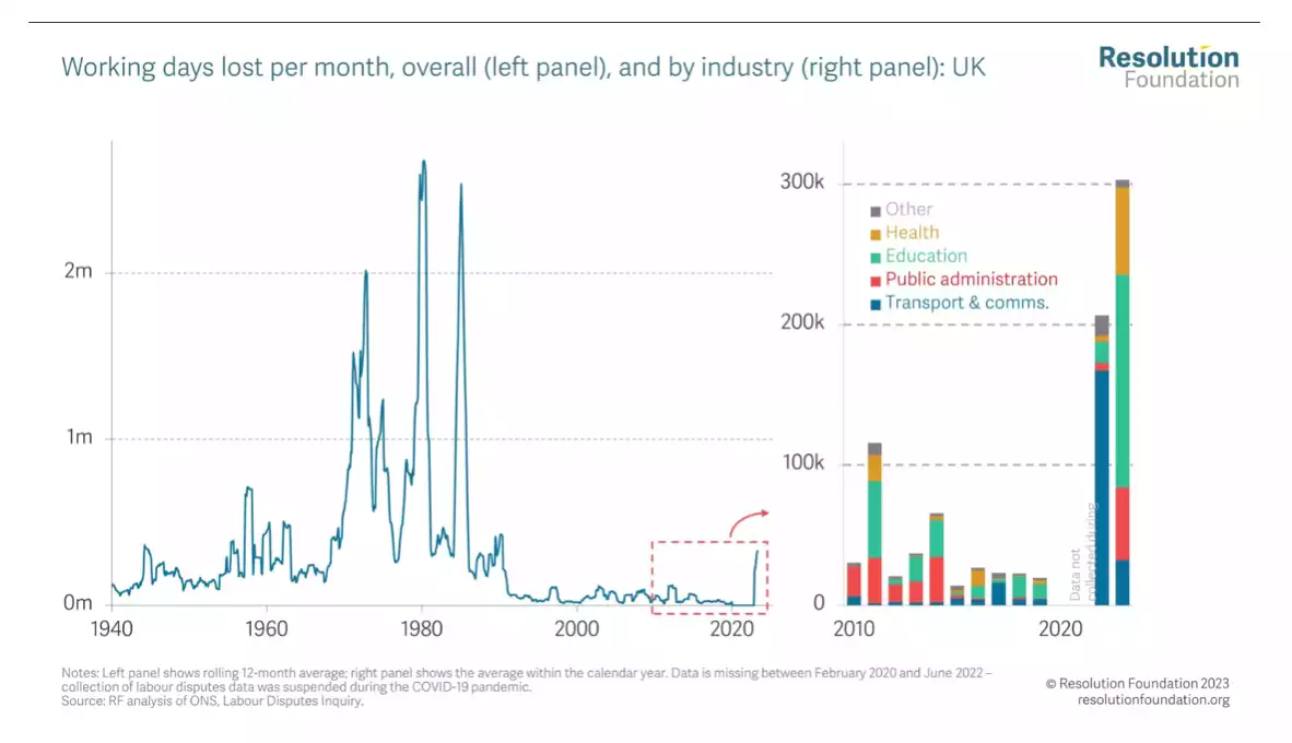 We have written recently about the current labour market and why unemployment is not what it is cracked up to be and is higher than what is being reported or structurally flawed. Whether it be hours worked, disability schemes hiding long term unemployed, dropping participation rates or record strike days in the UK labour is hard to fine – sure – but people are working less. If interest rates stay higher longer and savings continue to fall people will be forced back into the workforce fundamentally shifting unemployment.