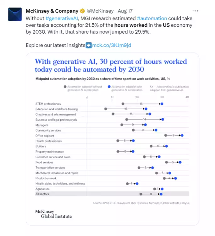And if the labour market is as strong as everyone says into the future – why are the price of AI stocks such as Nvidia so high on PE multiples – if its not going to help automate office jobs, reduce labour and create unemployment? A recent McKinsey and Company estimate of the AI transition for the accounting automation for the US economy suggest 30% of hours worked could be reduced by AI by 2030 – so what will the unemployment rate do then and shouldn’t it have already started?