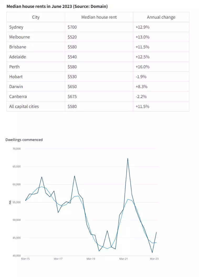 Despite multiple interest rate rises in both Australia and the US right now house shortages, increased mortgages and rental increases are biting consumers, and have been a major cause of inflation. But what do higher longer rates do to this market, and is higher longer the answer? Well higher longer is stalling housing approvals – look at Australia, despite rental increases of 12.9%, housing supply and construction continue to stall. Why? Because of the uncertainty in prices going forward and the cost to build. So as for the example in Australia, rents have gone up 11.5% in all capital cities in the last 12 months, dwellings commenced building continue to decline reaching a 10 year low in March despite record immigration. Higher returns with higher interest rates combined with higher uncertainty is not stimulating the housing market like Central Banks thought it should. Looking at the graph dwelling peak was in April 21 – right when that pesky ‘transitory’ word kept popping up.