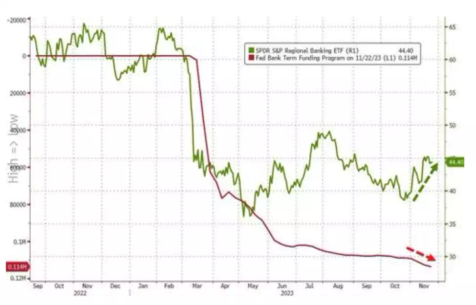 While the $114 billion outstanding in the BTFP is relatively small compared to the $22.8 trillion in commercial bank assets held by US banks, concerns arise about persistent problems within the banking system. The ongoing reliance on bailout borrowing, even with improvements in the bond market, suggests underlying challenges.