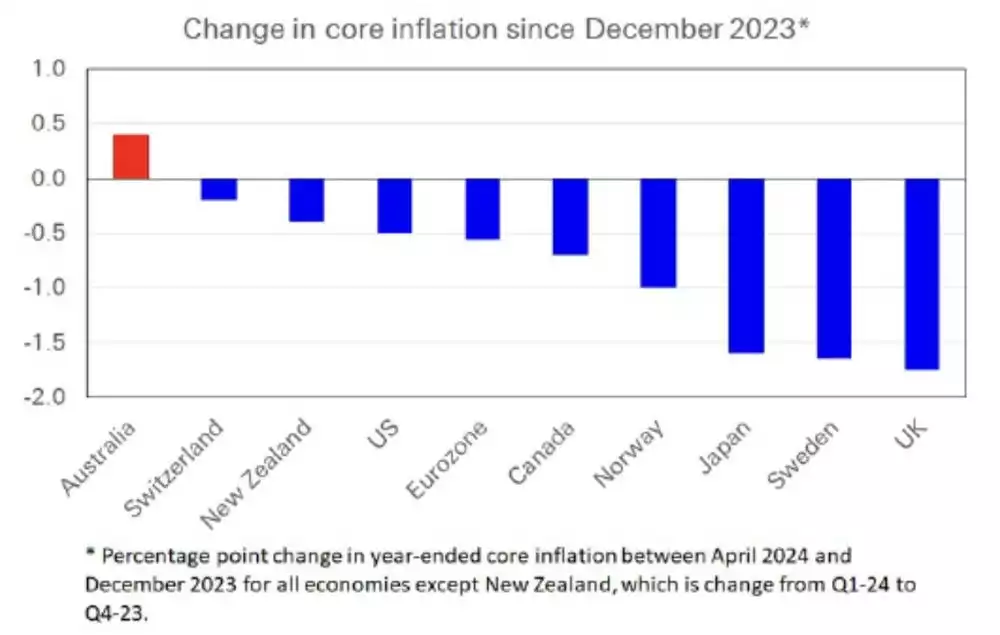 "In fact, Australia is the only G10 country where underlying inflation has increased since December."