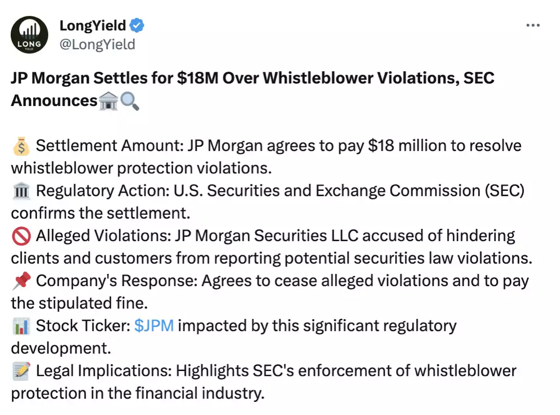According to an SEC press release, JP Morgan regularly requested retail clients, from March 2020 to July 2023, to sign confidential release agreements if they received a credit or settlement exceeding $1,000 from the firm. These agreements compelled clients to maintain confidentiality regarding the settlement, its underlying facts, and information related to the concerned account. While clients were allowed to respond to SEC inquiries, they were prohibited from voluntarily contacting the SEC.
