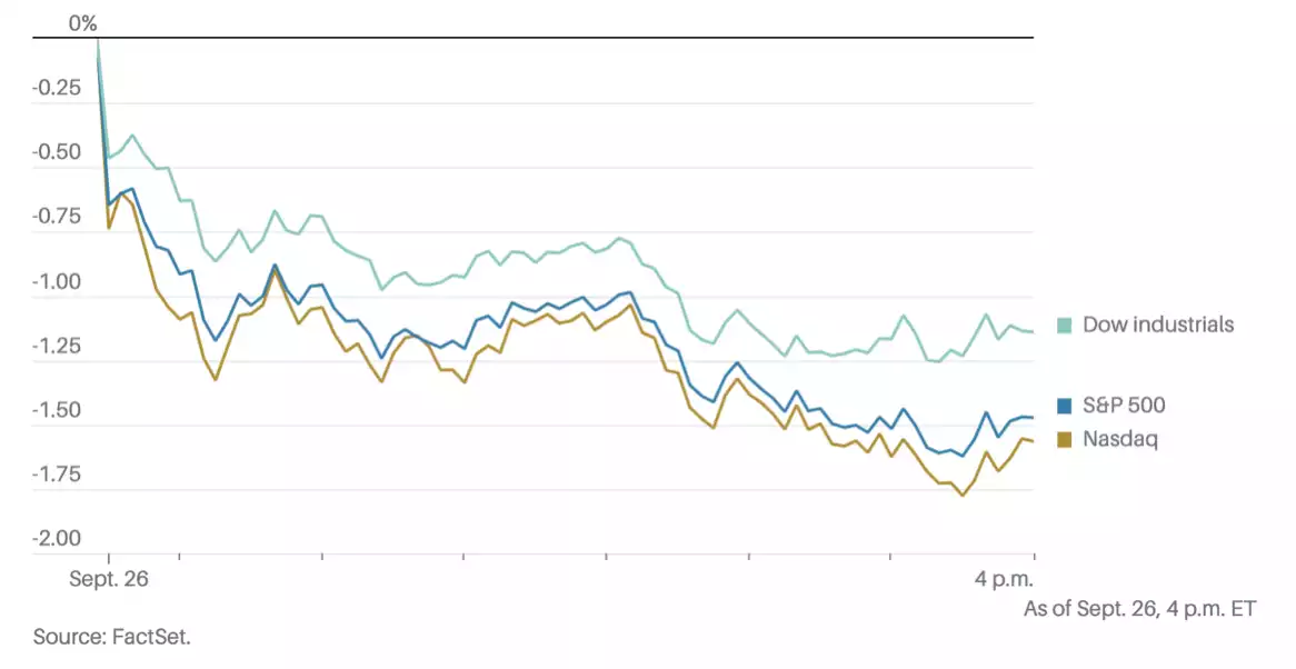 Two major indices, the S&P 500 and the Nasdaq Composite, experienced sharp declines, reaching their lowest levels since early June. This decline in stock prices was primarily driven by a growing consensus among investors that the Federal Reserve would maintain elevated interest rates for a more extended period.