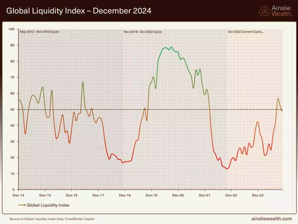 We are currently about 40% of the way through a macro liquidity cycle; the further along we get, the more money there is moving around the financial system, and the greater leverage, risk and euphoria enter financial markets.