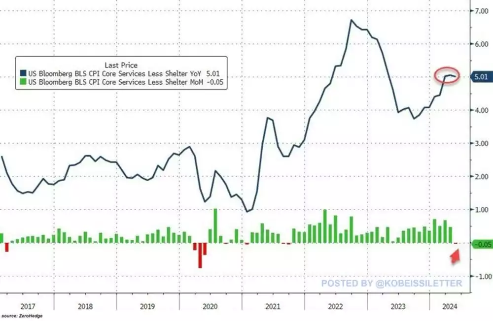 Overall, inflation has been above 3% for 38 straight months, the longest streak since the 1990s’ when it lasted for 54 months. Looking beyond that headline number and to one of Fed’s preferred metrics, the so called Supercore inflation which is core services less shelter and it looks less rosy, hence the Fed’s cautiousness. Over the last 8 months, it has risen significantly from just 3.8% in October. You can see below that last night may have been a pause or turn from that strong second rally.