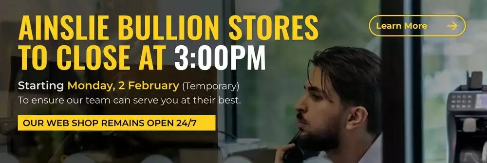 From Monday 2 February, all Ainslie Bullion physical stores (Brisbane, Melbourne, and Gold Coast) will operate under updated business hours, closing at 3:00pm each weekday, until further notice.