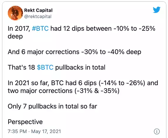 The pullbacks and criticisms from influences are just removing the weak hands from the market. What people forget is that dips and pullback are all a part of the BTC bull run process - this tweet puts the recent pullbacks in perspective too: