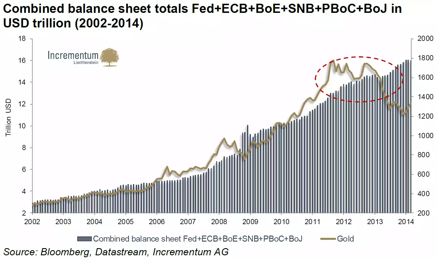 The accumulation of unsustainable government debt is one of the key reasons people buy gold and silver. The chart below clearly illustrates just how insane this has become as governments print money (accumulating debt on central bank balance sheets) to run continual deficits to remain elected and keep markets artificially buoyant and depress their respective currencies against the other to globally compete (which becomes a death spiral when everyone does it….). Last year we saw the gold price deviate from its historic trend of protecting wealth against this debt binge. Many believe this was brought about by orchestrated shorting of paper derivatives and defies global (particularly Eastern) demand. That East and West dynamic has seen 2 distinctly different approaches. China has played the debt game too but has bought things of intrinsic value like gold (at the low prices) in epic amounts and built infrastructure (even derided for its ‘ghost cities’). The US has (simplistically) bought shares at very high PE’s and which have repeatedly shown can lose 50-80% in value over night… The disconnect depicted below looks set to reverse. As a reminder $16t is $16,000,000,000,000….