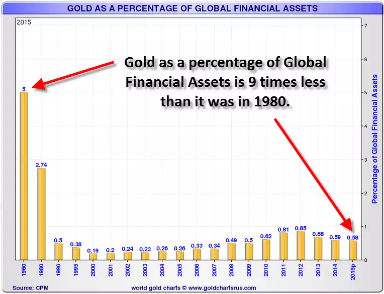 The last estimate of the total of global financial assets was around $295 trillion. That includes shares, bonds, etc. We discuss this in our new Why Buy Bullion download. If you haven’t already, it’s worth a look (even for old timers).