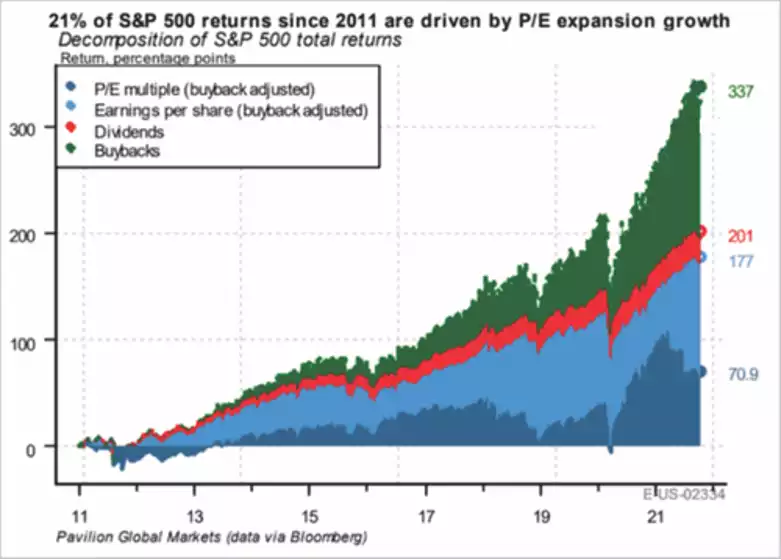 What makes this a little harder to digest is that at the same time these companies are using shareholder cash to buy up their own shares, further inflating the price and no doubt helping those fat bonuses… Pavilion Global Markets have calculated the 40.5% of the S&P500’s returns have been courtesy of buybacks!