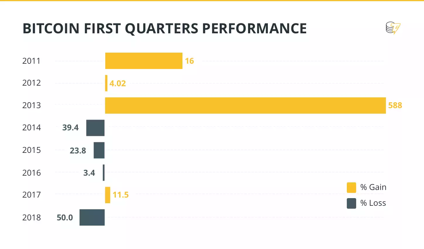 Since inception, there have not been many times where Bitcoin has seen an extended period of negative growth like we experienced in the first three months of 2018. In fact, this first quarter of 2018 has broken records and registers as the worst first quarter in the history of Bitcoin, and the second-worst quarter ever.